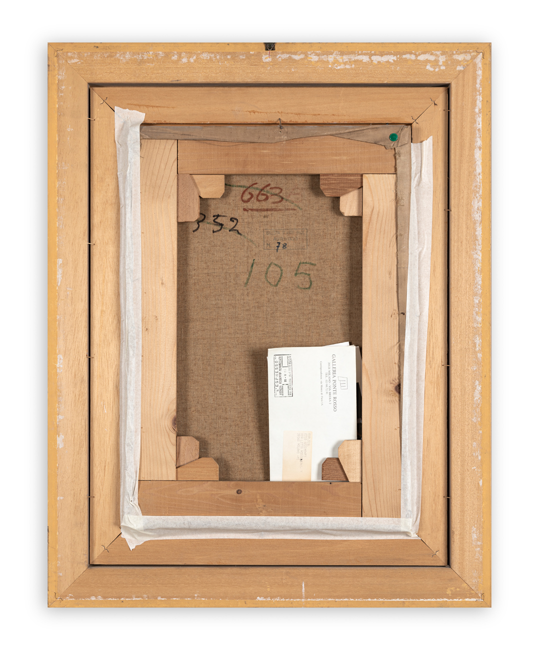 Timbro della Galleria Pace (MI) con relativo numero di repertorio al retro
