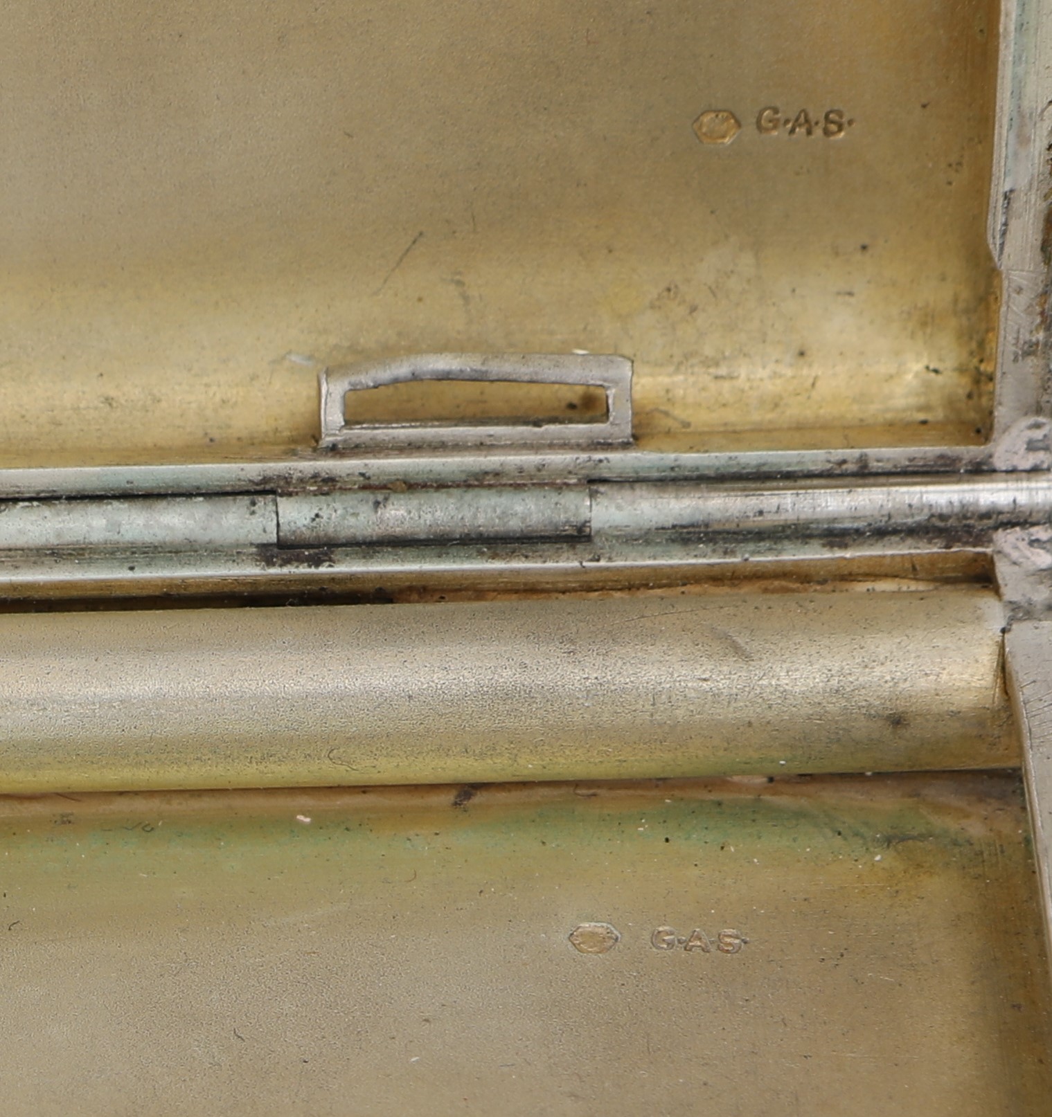 Portasigarette in argento (?) con portafiammiferi, fine del XIX/inizi del XX secolo cm 9,3x7x1,2 - gr. 180