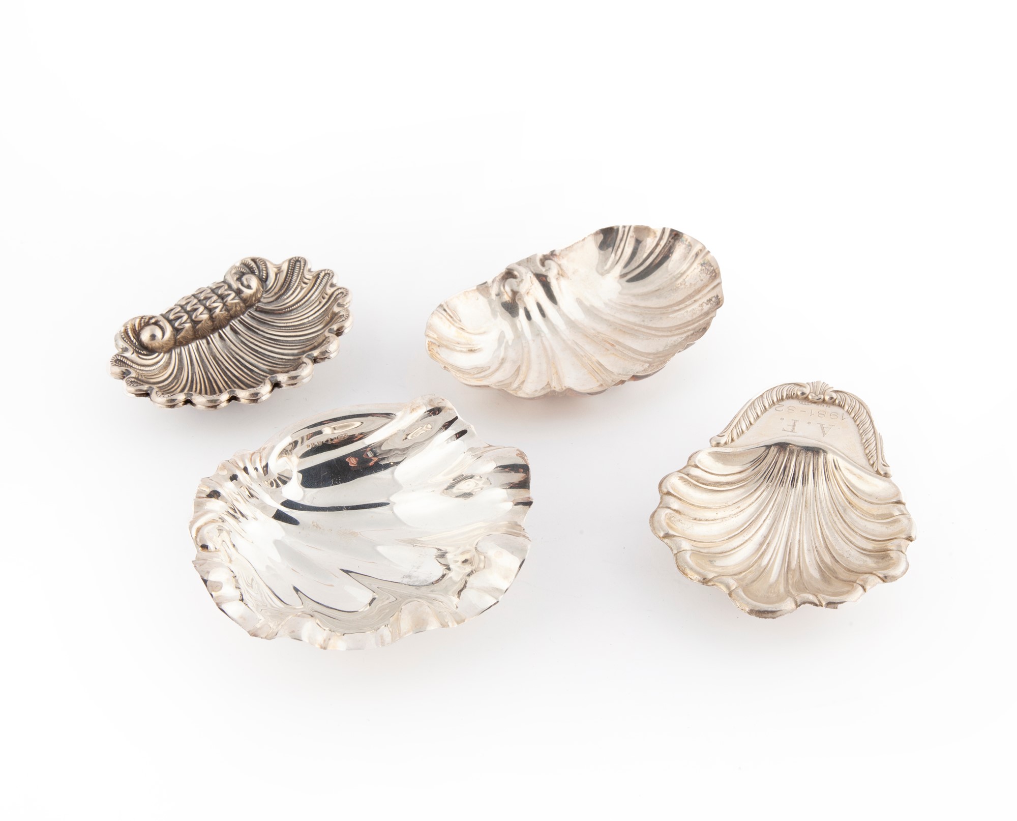 Cinque piattini diversi a forma di conchiglia, peso complessivo gr. 92