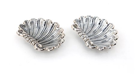Coppia di posacenere in argento 925 a forma di conchiglia, cm 9x6,5 - gr. 60