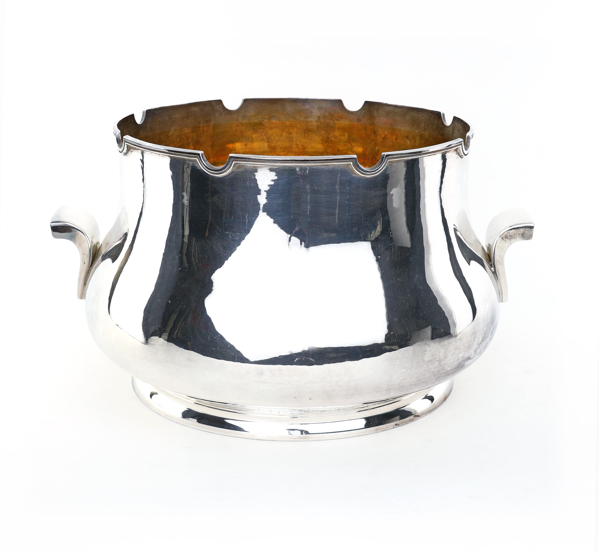 Rinfrescatoio in argento, Italia, seconda metà del XX secolo con interno dorato e brevi manici arcuati, cm 20x35x26 - gr. 18