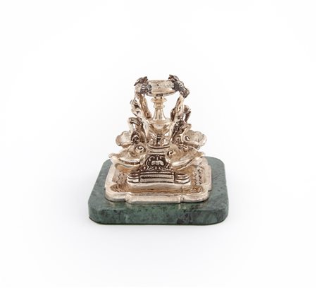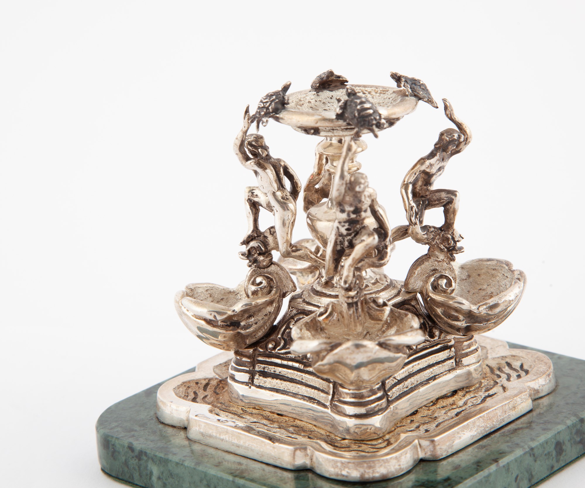 Modello della fontana delle tartarughe in piazza Mattei a Roma supporto quadrangolare in marmo verde, cm 8,5x9x9