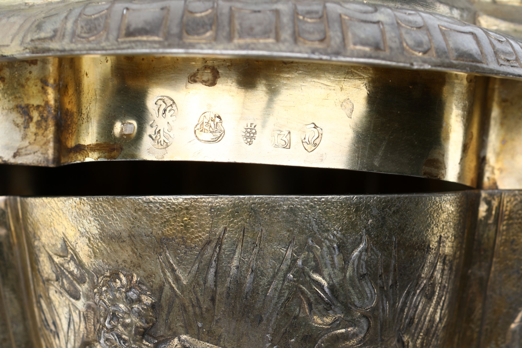 Grande coppa con coperchio in argento fuso, sbalzato e cesellato, bolli austro ungarici altezza cm 67 - gr. 2288