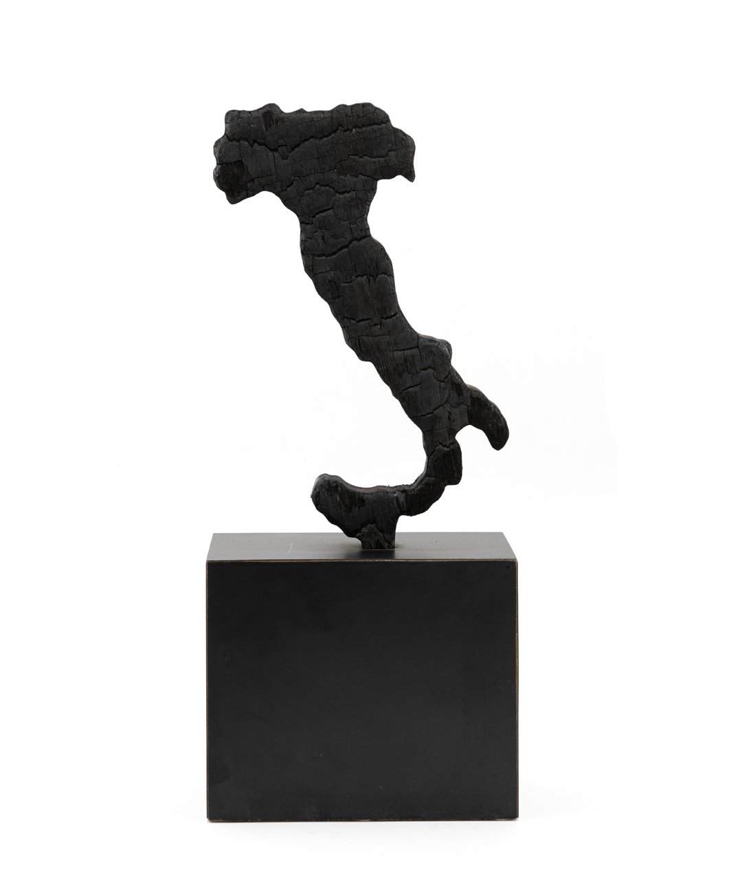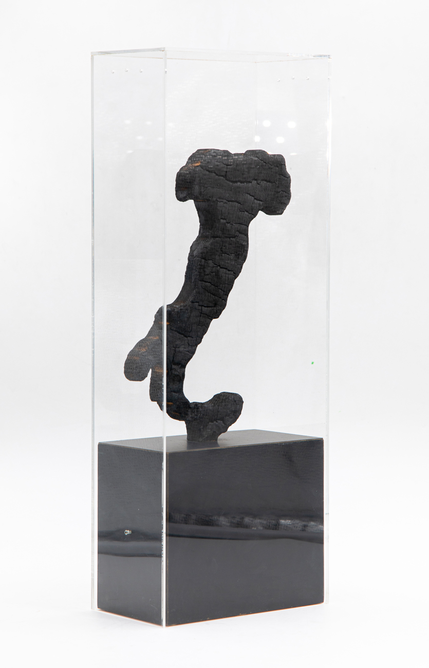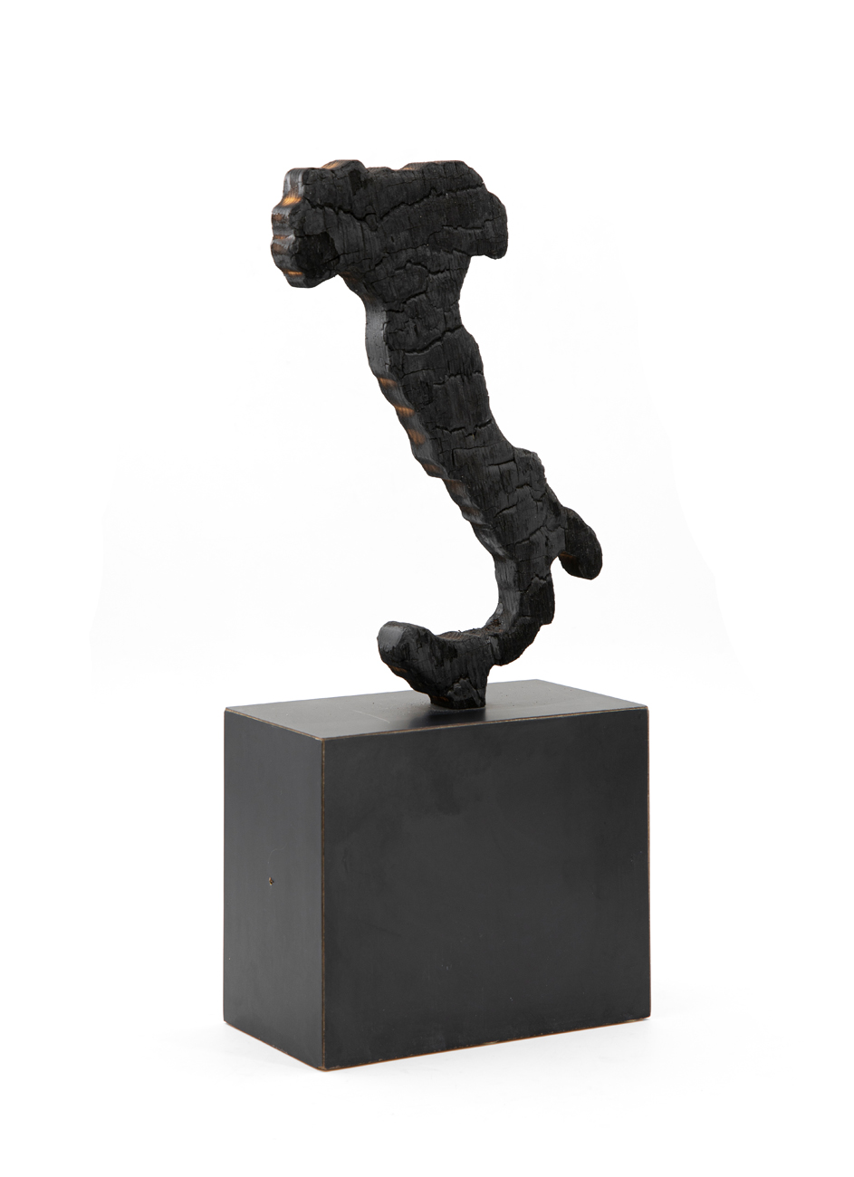 Scultura in carbone e base in legno