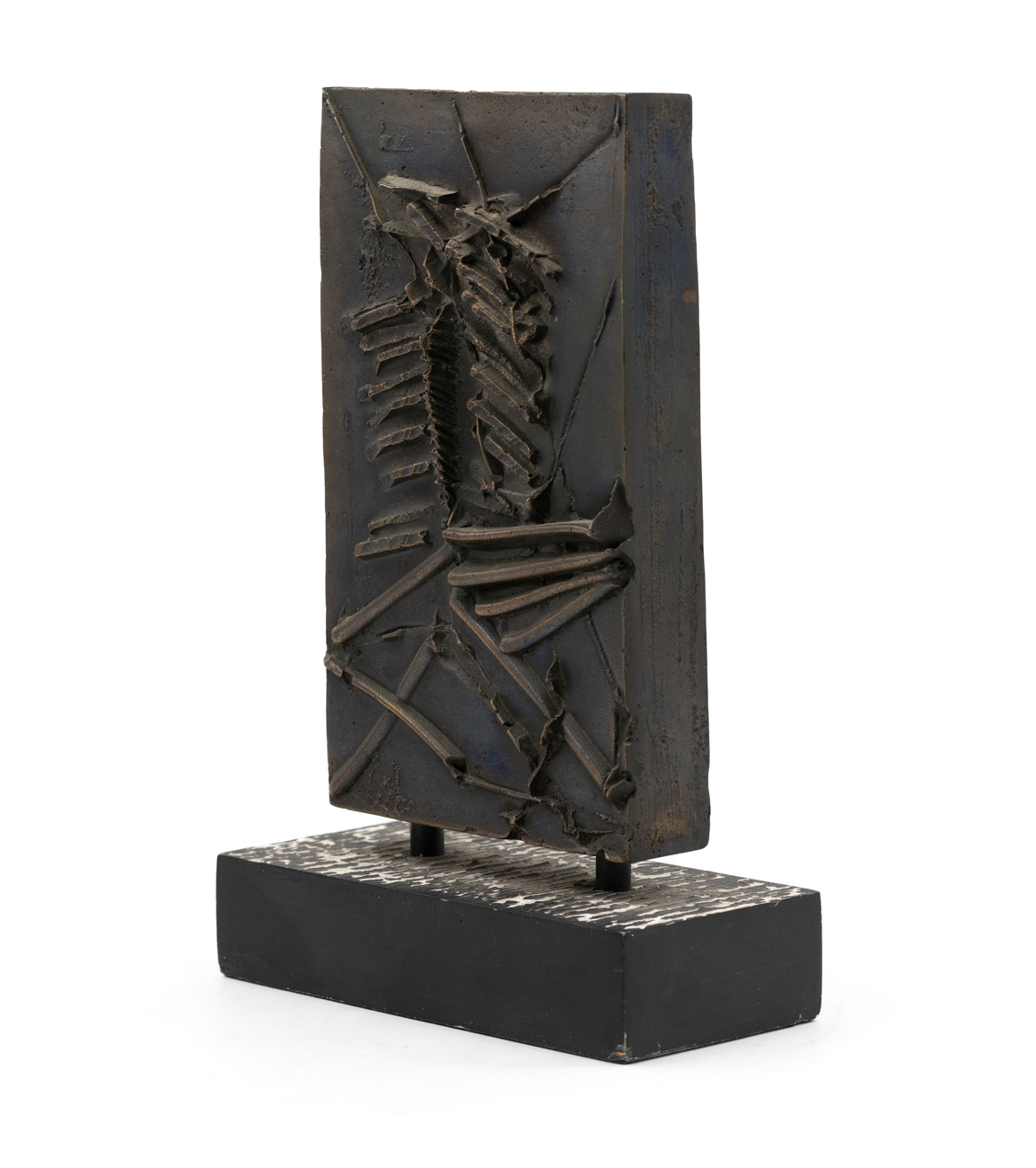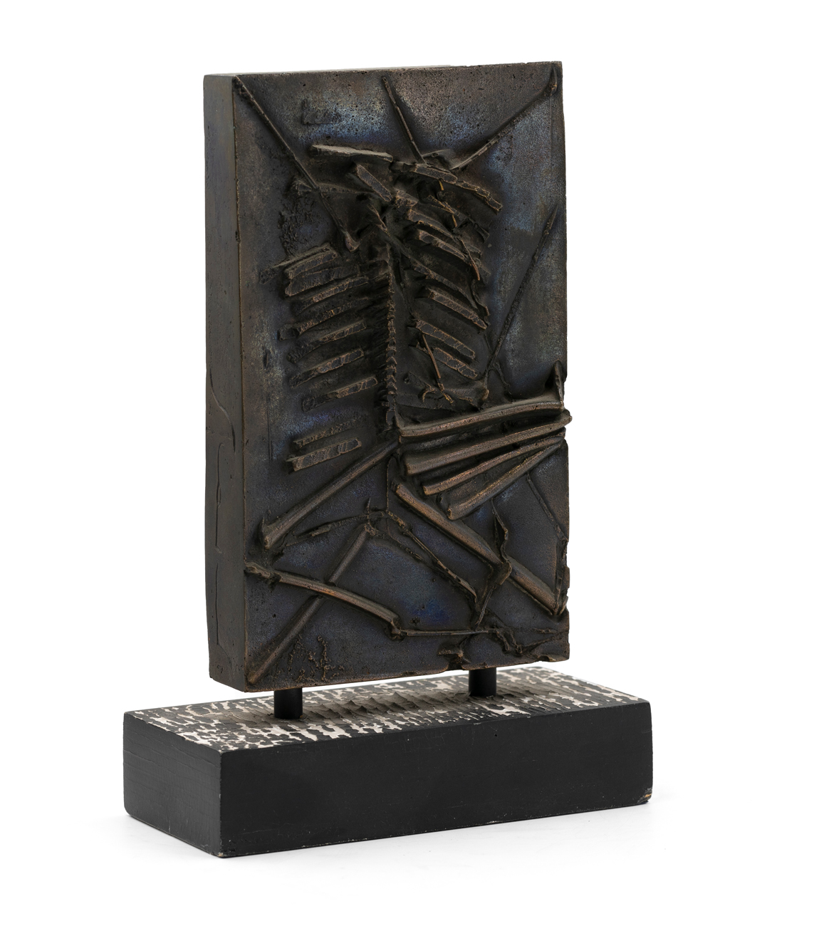 Bassorilievo in bronzo su base in legno