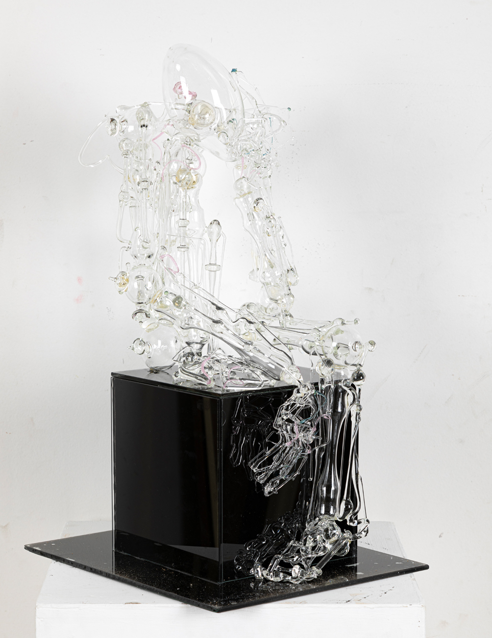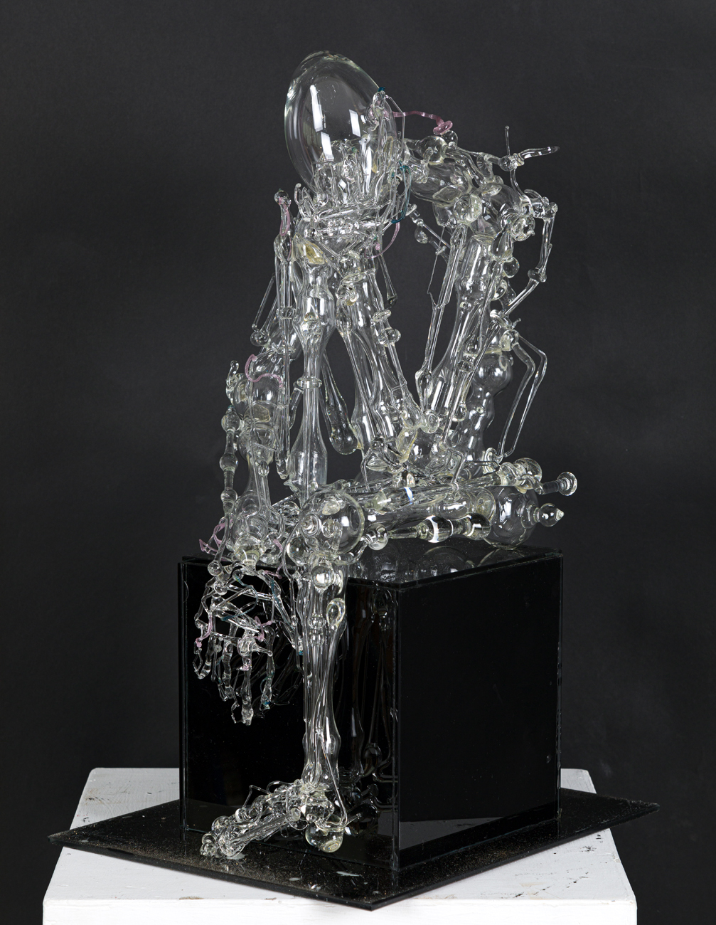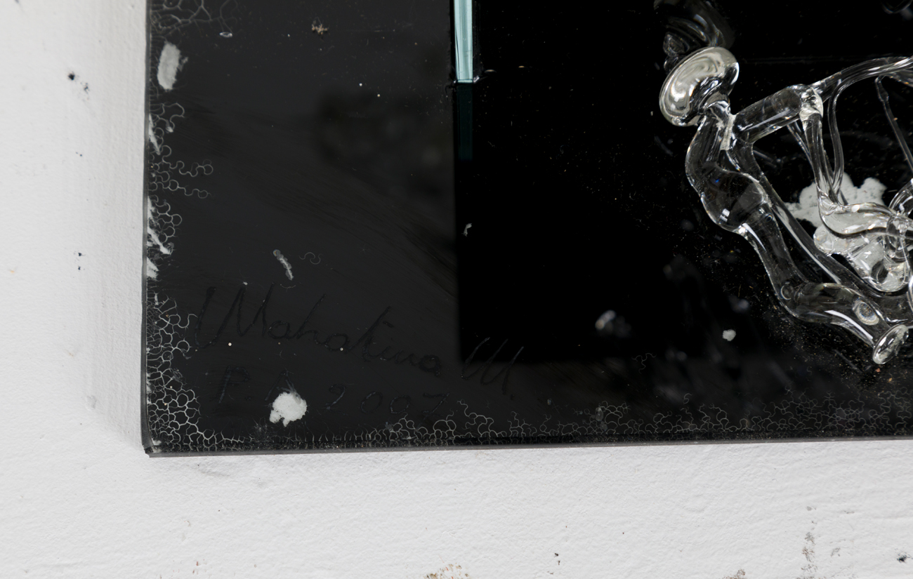 Firma, datazione e iscrizione "P.A." incise sulla base del plexiglass
