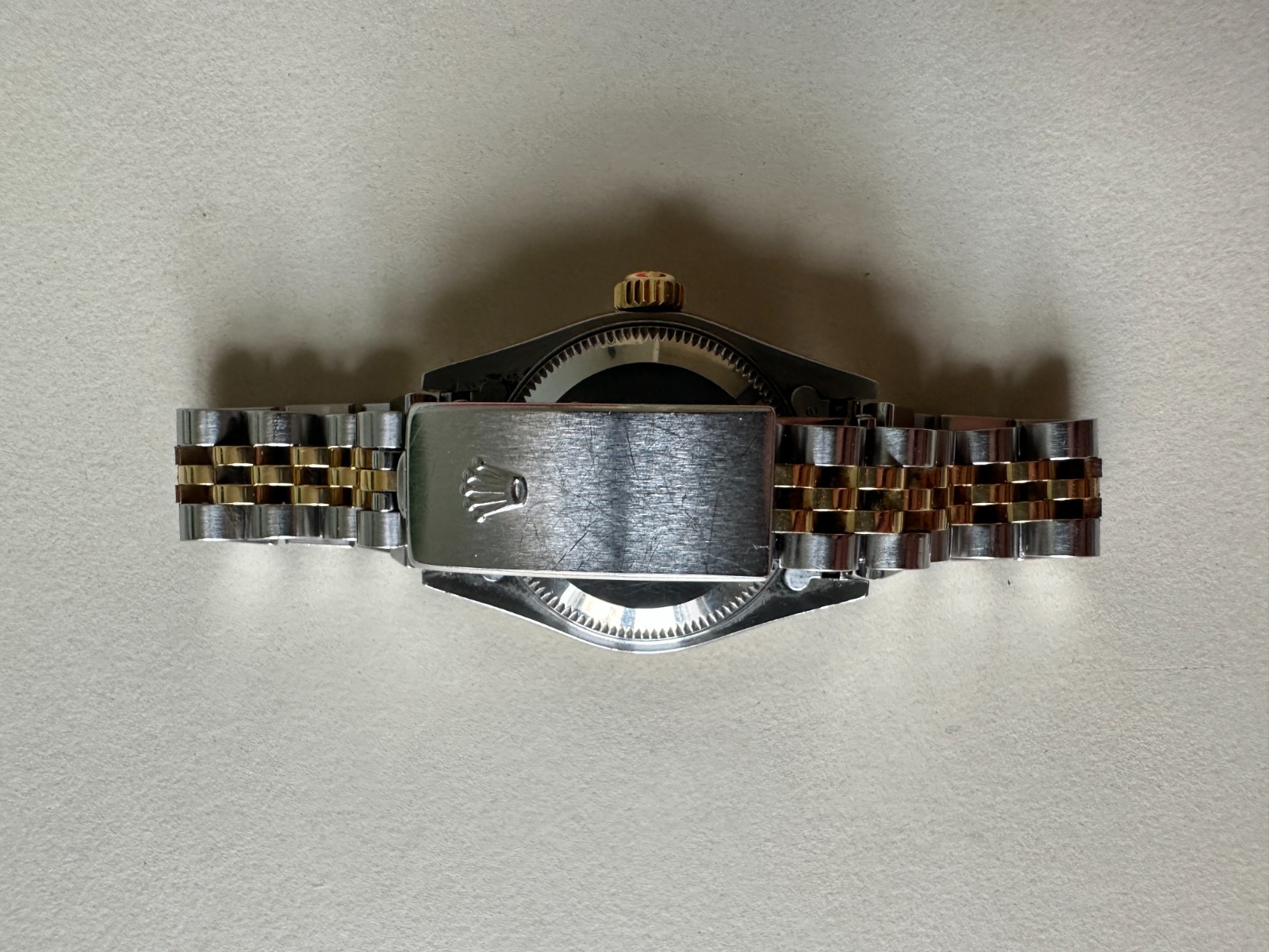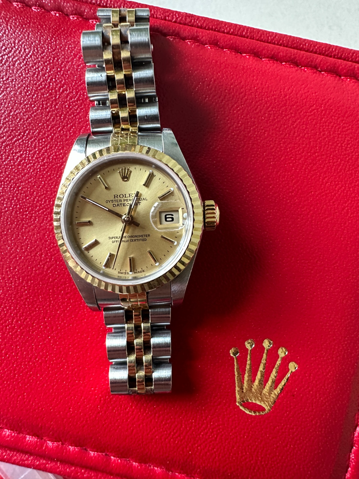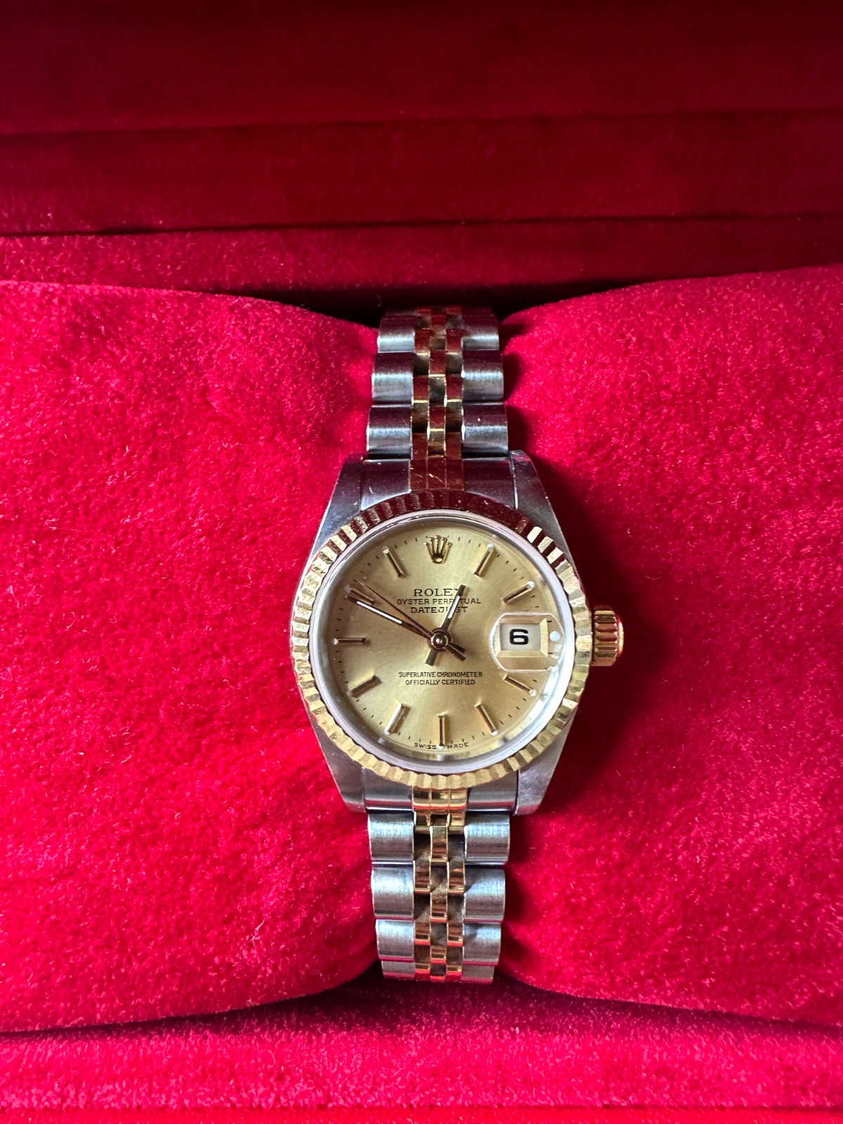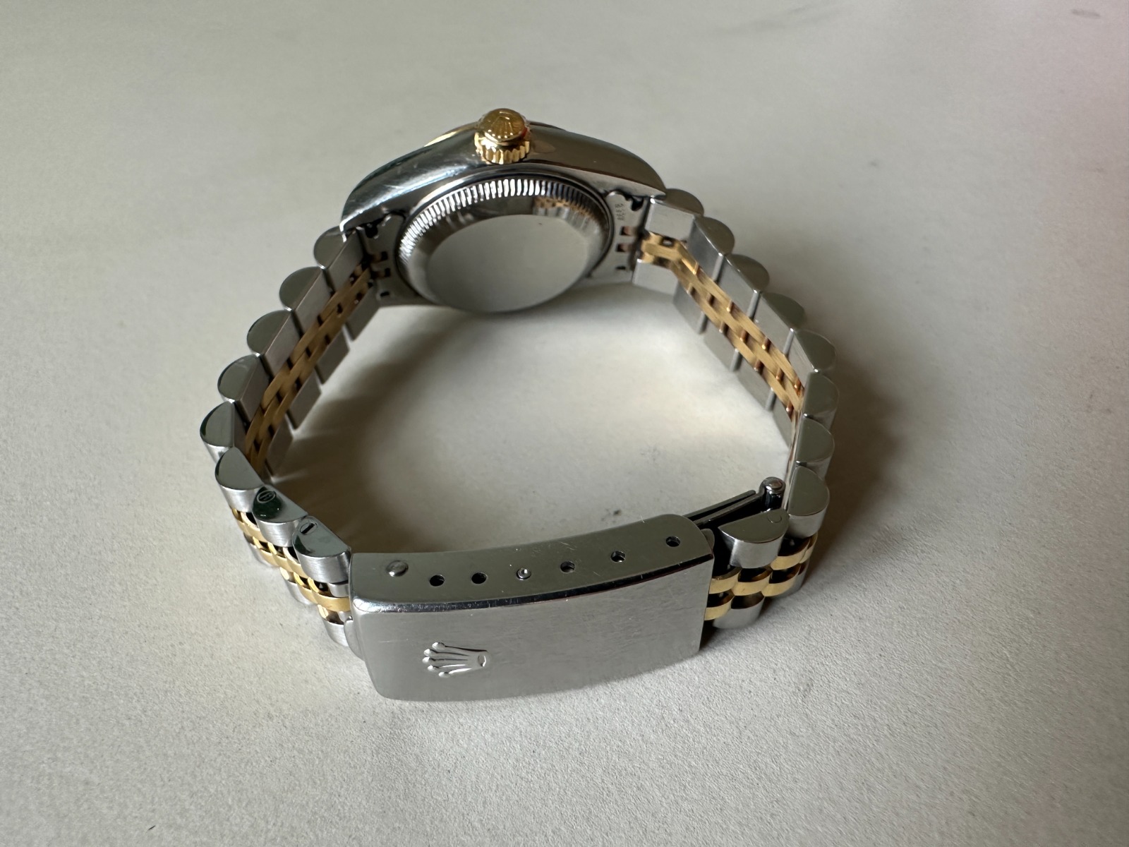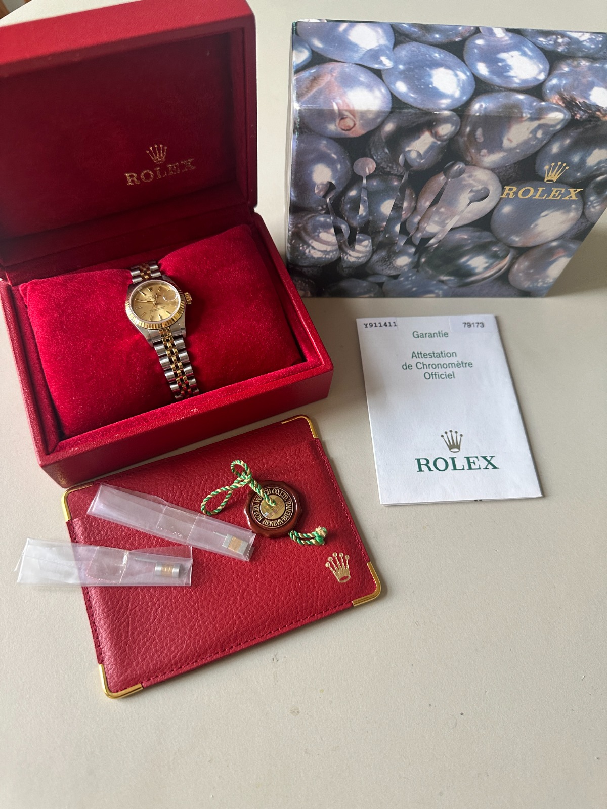 Marca Rolex Modello (Orologio) Lady-Datejust Numero di referenza 79173 Carica Automatico Materiale della cassa Oro/Acciaio Materiale cinturino Oro/acciaio Anno di produzione 2002 Condizione Ottime (segni di usura o graffi poco visibili o visibili) Corredo Con scatola originale e documenti originali Carica Automatico Calibro/Meccanismo 2235 Cassa Materiale della cassa Oro/Acciaio Diametro 26 mm Prova Impermeabile 10 ATM Materiale lunetta Oro giallo Vetro Vetro zaffiro Quadrante Champagne Cinturino Materiale cinturino Oro/acciaio Colore cinturino Oro/acciaio Chiusura Déployante Materiale chiusura Acciaio Funzioni Data