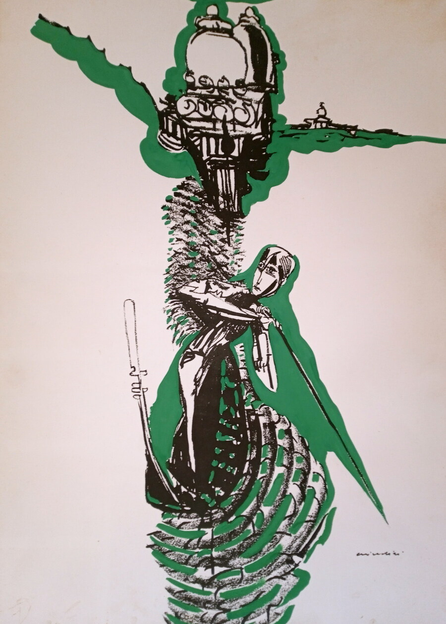 BRINDISI REMO Roma (Roma) 1918 Venezia 1970 Tempera su base litografica...