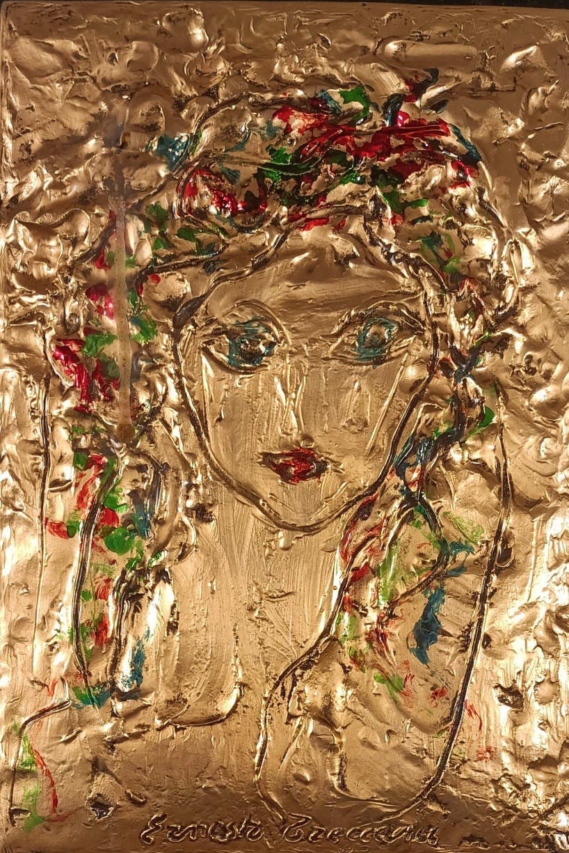 Bassorilievo in argento 900/1000 placcato oro 24 carati