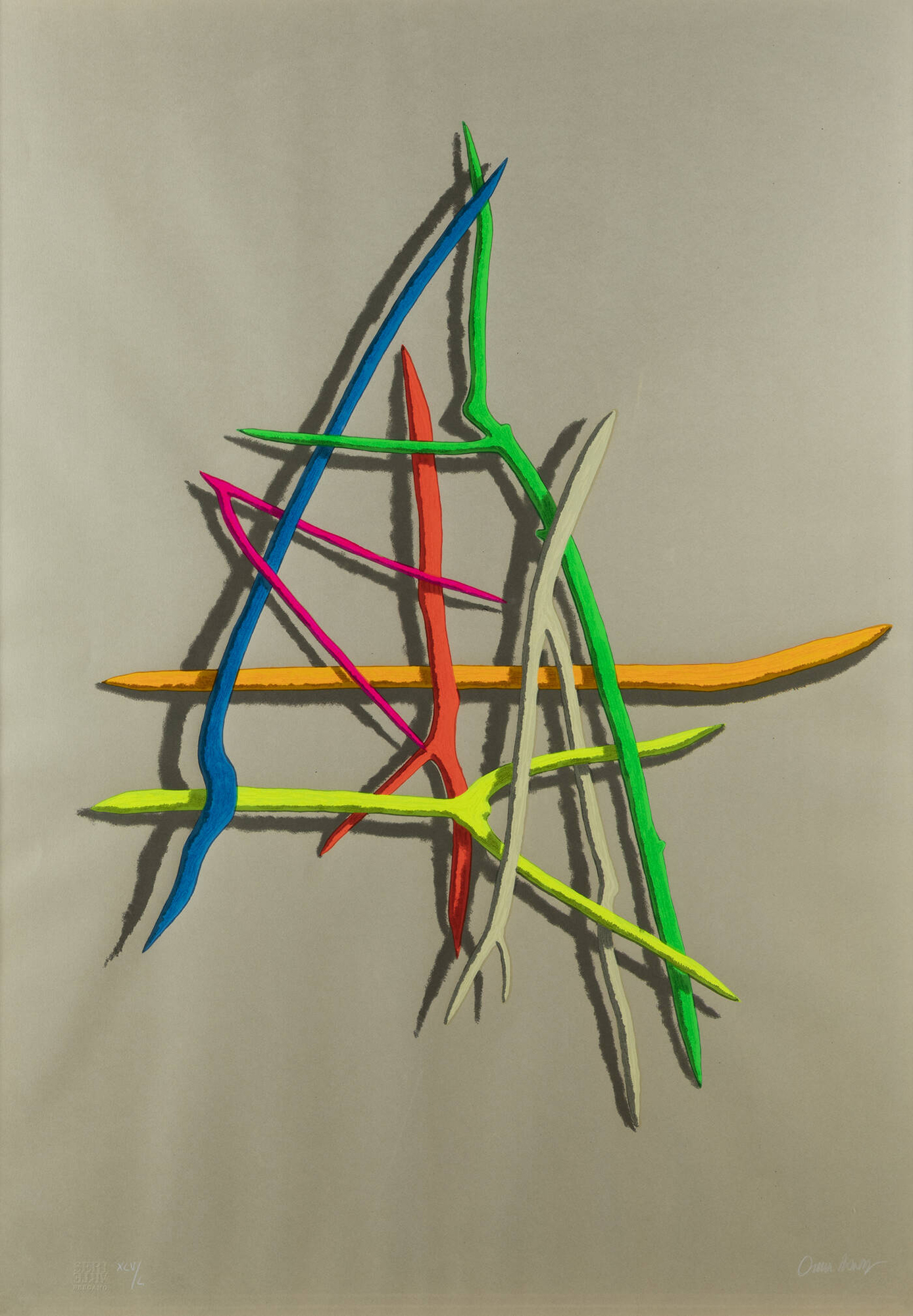 Opera firmata in basso a destra e numerata in basso a sinistra (a matita bianca)