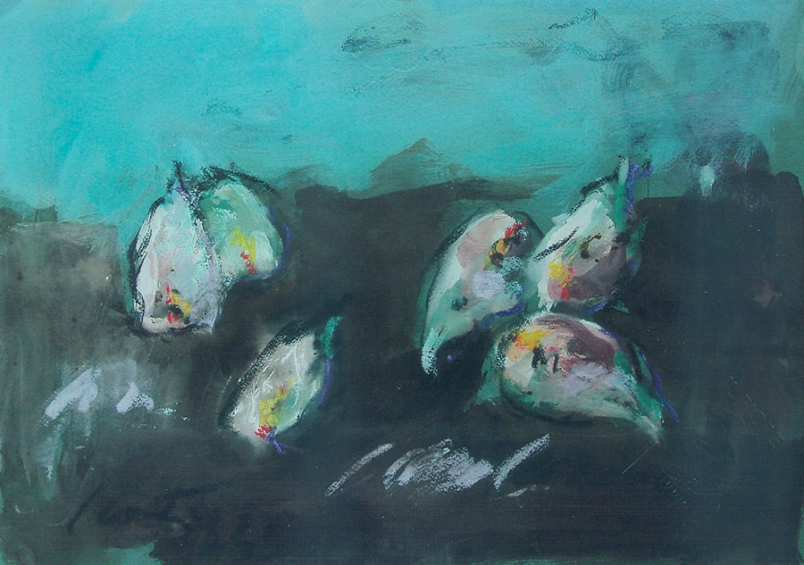 SERGIO SCATIZZI Natura morta, primi anni ‘80 Tempera su carta riportata su tavola cm. 34,5x50 firmata Autentica del maestro su fotografia Certificato dell’archivio del maestro