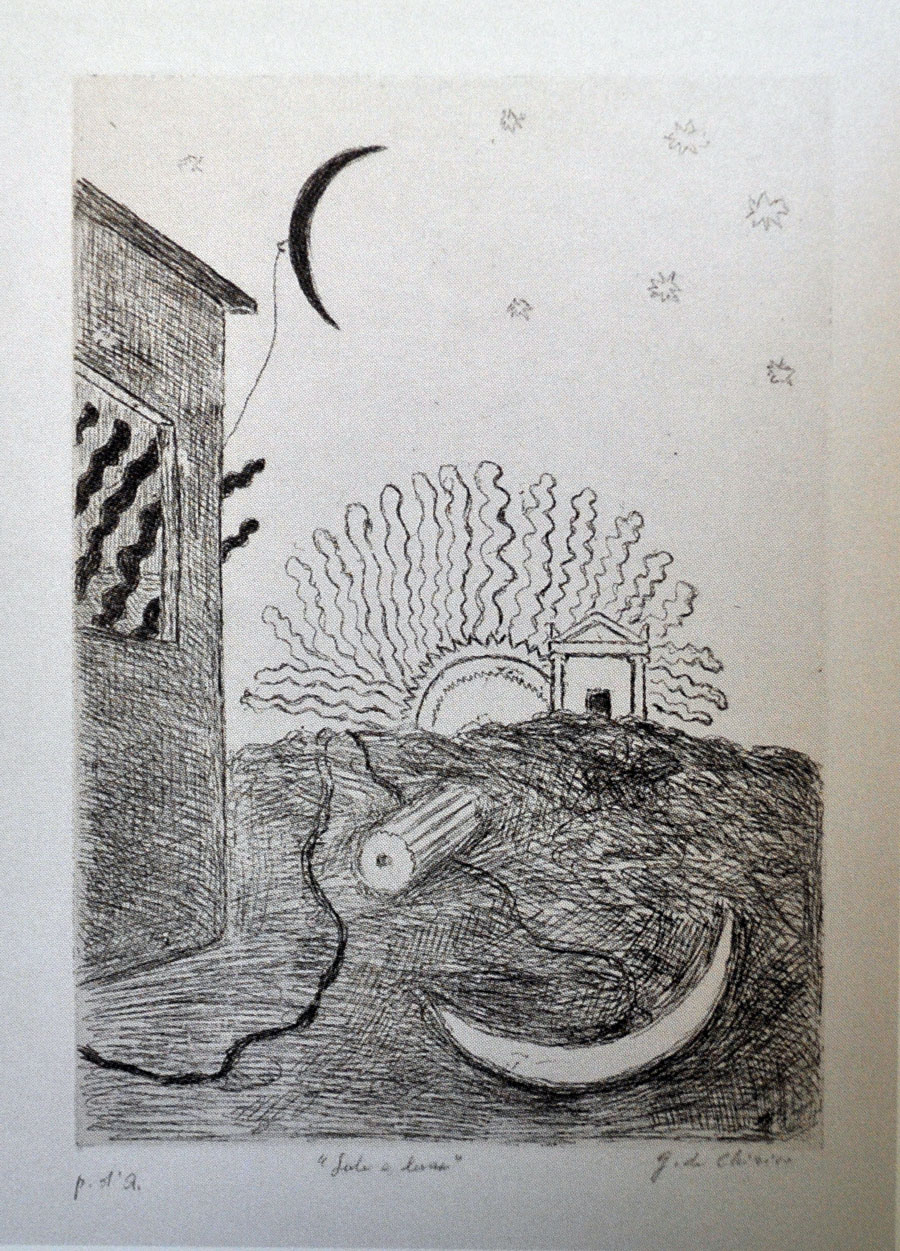 GIORGIO DE CHIRICO Sole e luna, 1970 Acquaforte – es. P.d’A. cm. 71,4x50,2...