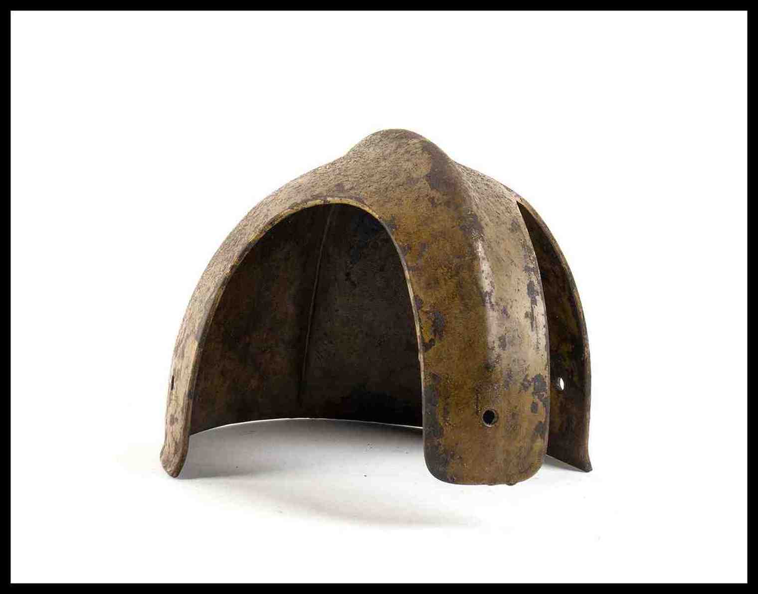 in acciaio con buchi per fissarla all’elmo, bella vernice pastosa presente al 90%, in ottimo stato, rara