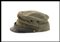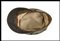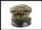 in lana grigio verde, con doppio occhiello da areazione di ferro smaltato nero, fregio in tessuto, soggolo di pelle scorrevole, interno in cottone naturale, con alluda di pelle marrone, interno marcato con taglia e timbro della sartoria FUNGHINI di Milano, ottimo stato, molto raro