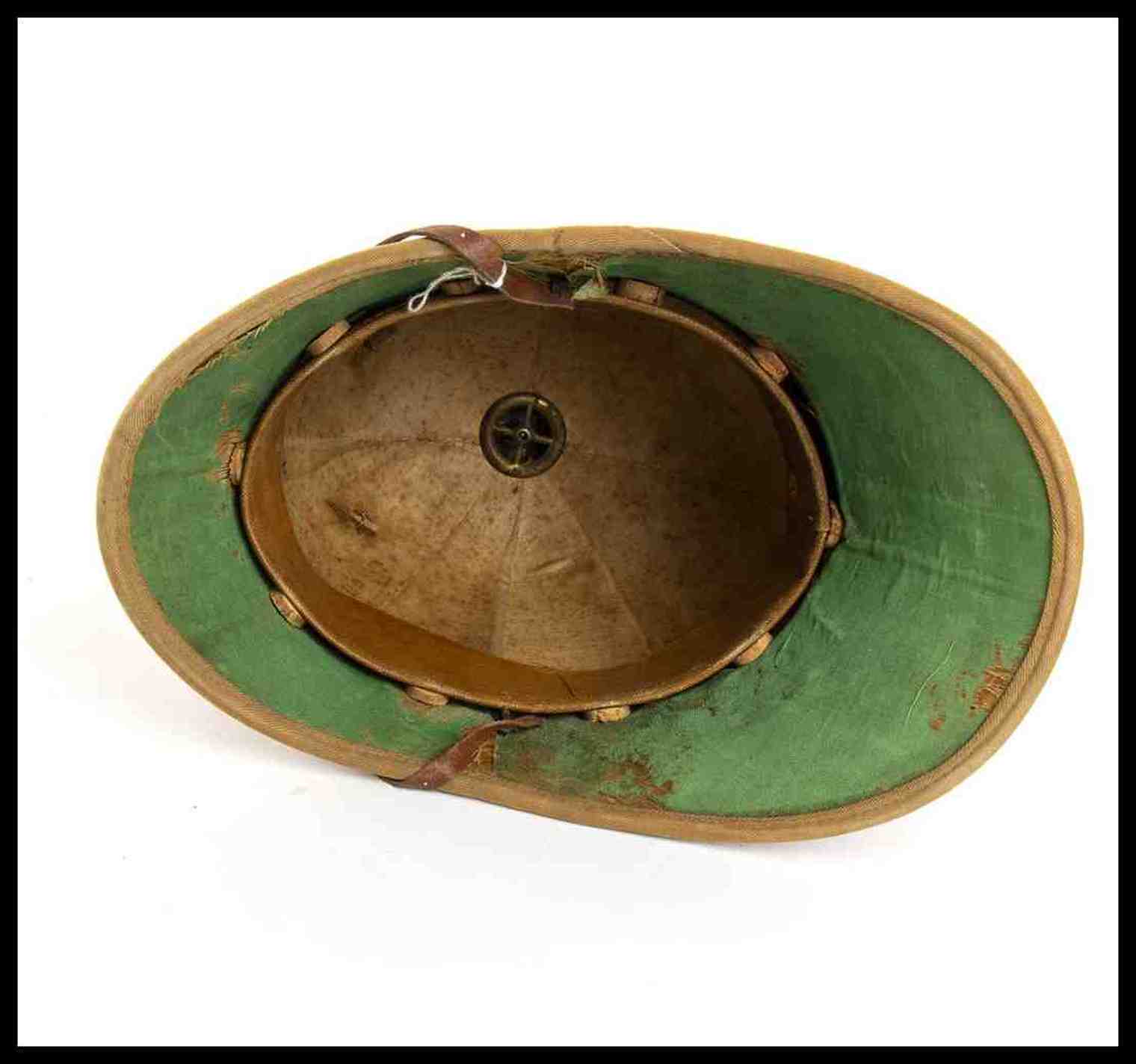 sughero ricoperto di tela di cotone, interno verde con alluda in pelle, bel fregio in ottone, ottimo stato