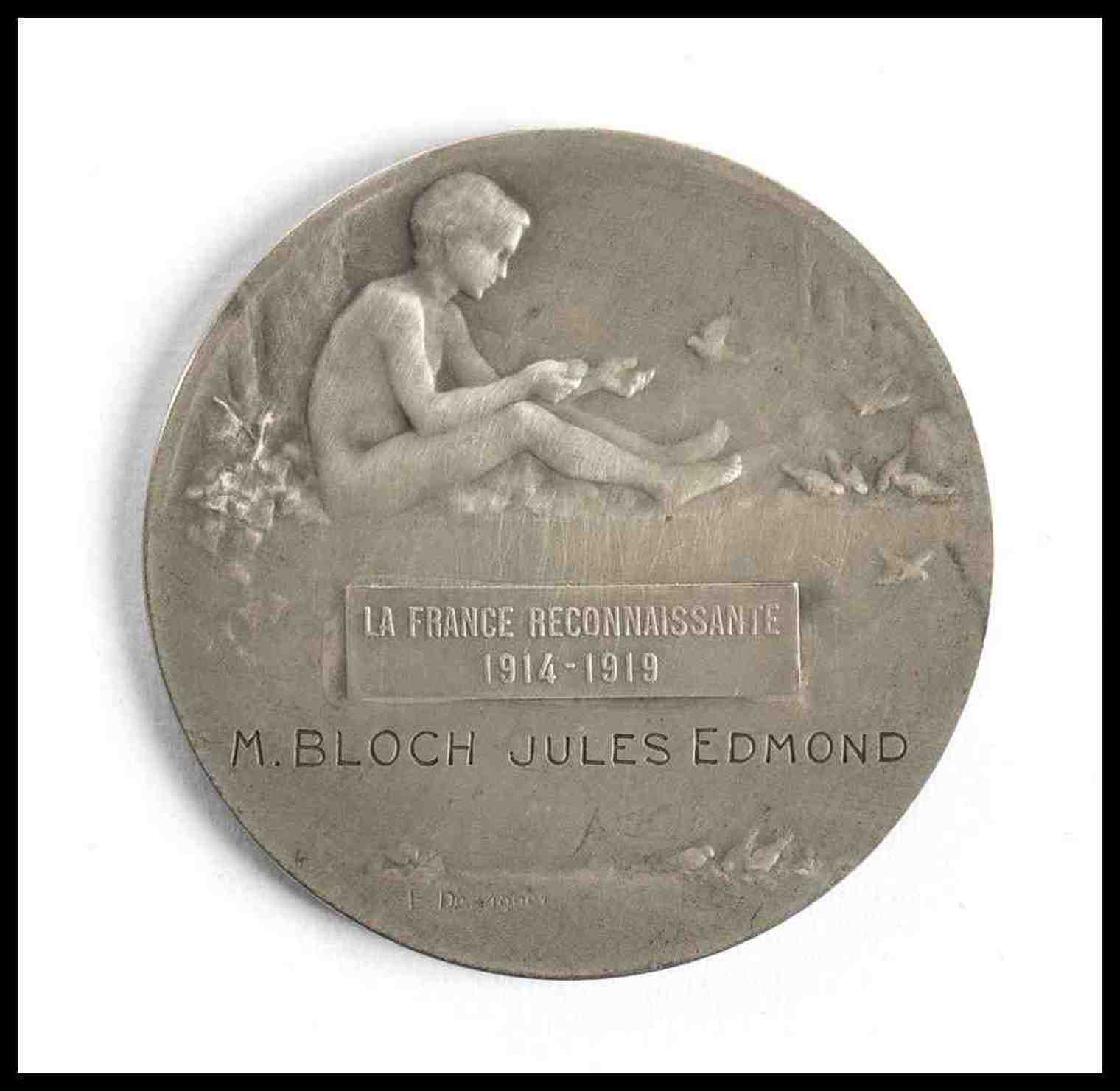 Medaglione statico LA FRANCE RECONNAISSANTE 1914-1919 / M. BLOCH JULES EDMOND