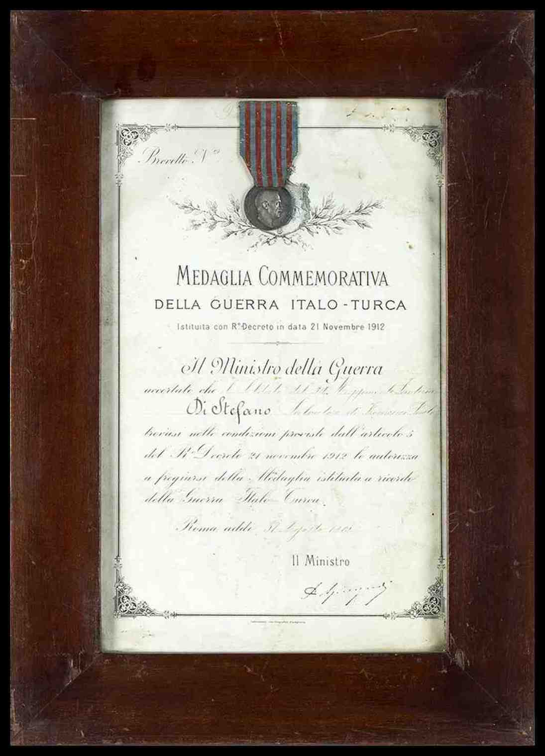 ITALIA Medaglia della Guerra Italo-Turca incorniciata con diploma di concessione