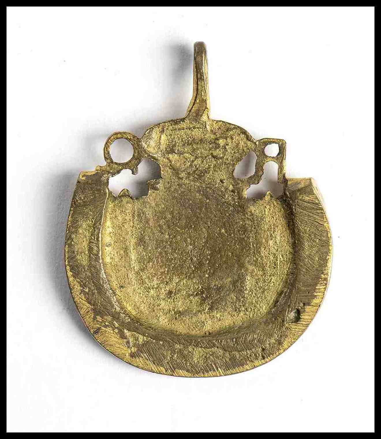 fusione in bronzo dorato, diam. 45 x 55 mm