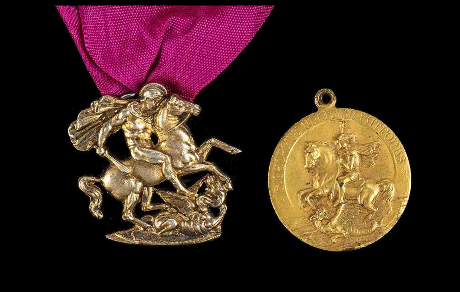 Lotto 397 | REGNO UNITO Lotto di medaglia ed piccolo insegna di San Giorgio con drago