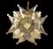 placca in argento gettato, inciso, traforato, parzialmente dorato, con applicazione centrale in oro e smalti, al verso spillone centrale e due ardiglioni con plachetta centrale incisa con dedica, 78 x 78 mm, fine XIX secolo