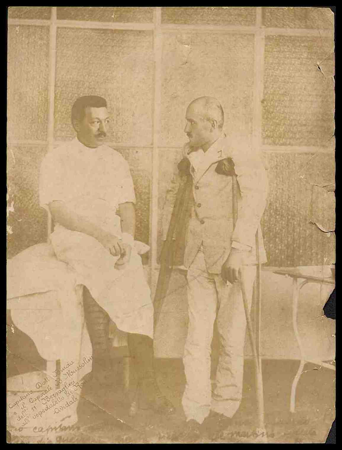 Grande foto di Benito Mussolini con medico curante durante la convalescenza