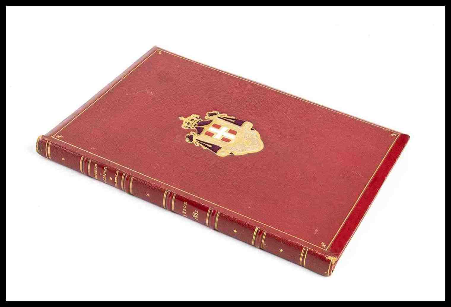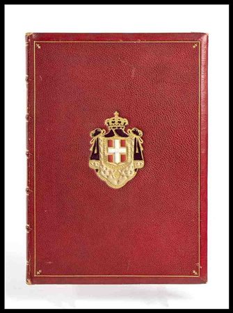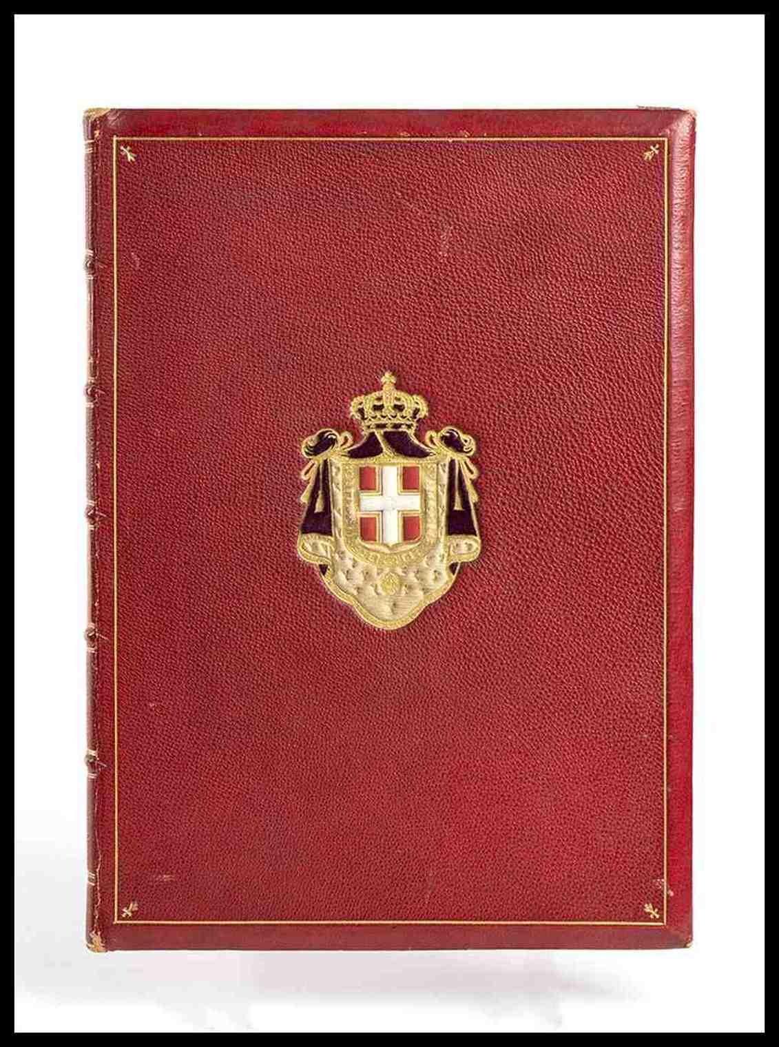 rilegatura in marocchino rosso con stemma Savoia impressa in oro