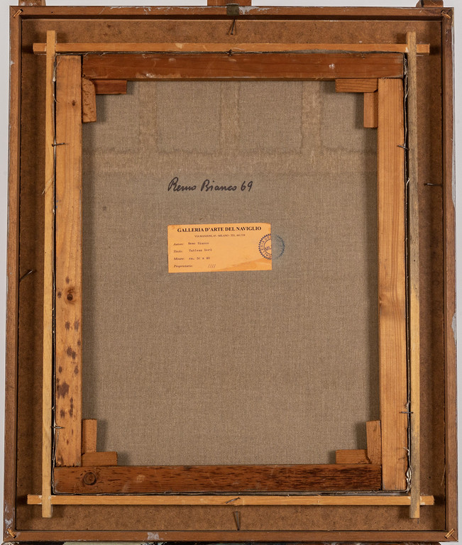 on the reverse: label of Galleria d'Arte del Naviglio Milan