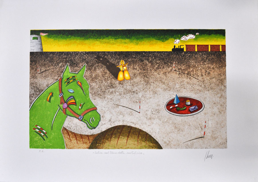 Lotto 130 | GIULIANO GHELLI Salire sul treno della metafisica Litografia a colori cm....