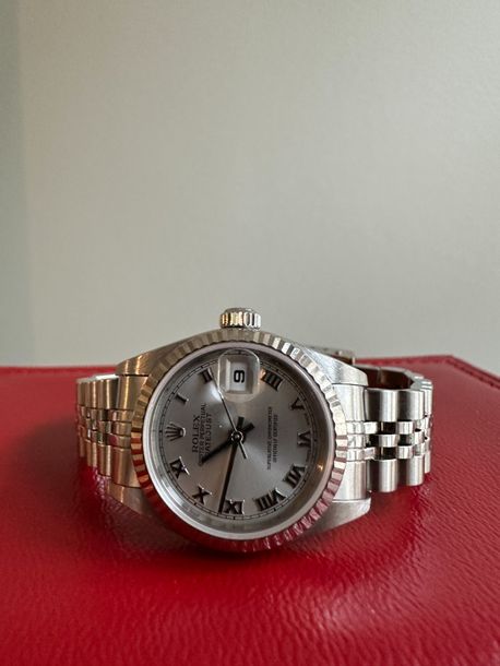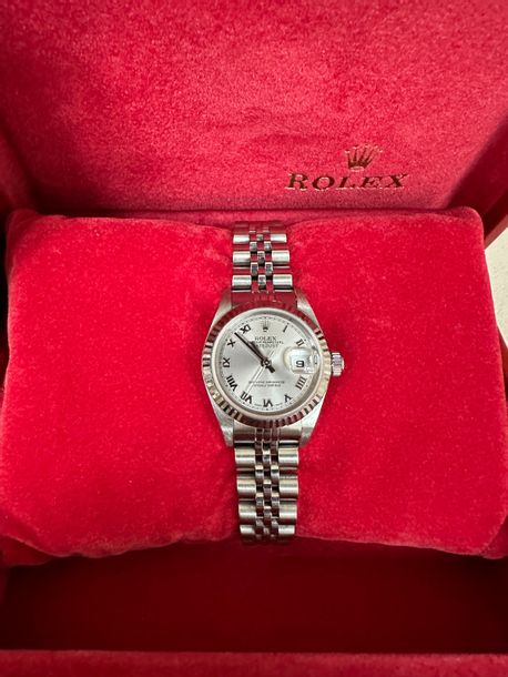 Marca Rolex Modello (Orologio) Lady-Datejust Numero di referenza 79174 Carica Automatico Materiale della cassa Acciaio Materiale cinturino Acciaio Anno di produzione 2002 Condizione Buono (segni di usura o graffi poco visibili o visibili) Corredo Con documenti originali, con scatola di fornitura Carica Automatico Cassa Materiale della cassa Acciaio Diametro 26 mm Prova Impermeabile 10 ATM Materiale lunetta Oro bianco Vetro Vetro zaffiro Quadrante Argento Cinturino Materiale cinturino Acciaio Colore cinturino Acciaio Chiusura Déployante Materiale chiusura Acciaio Funzioni Data