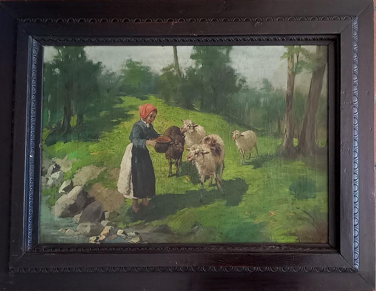 Soressi Alfredo (Piacenza 1897-1982) Pastorella con pecore olio su tela...