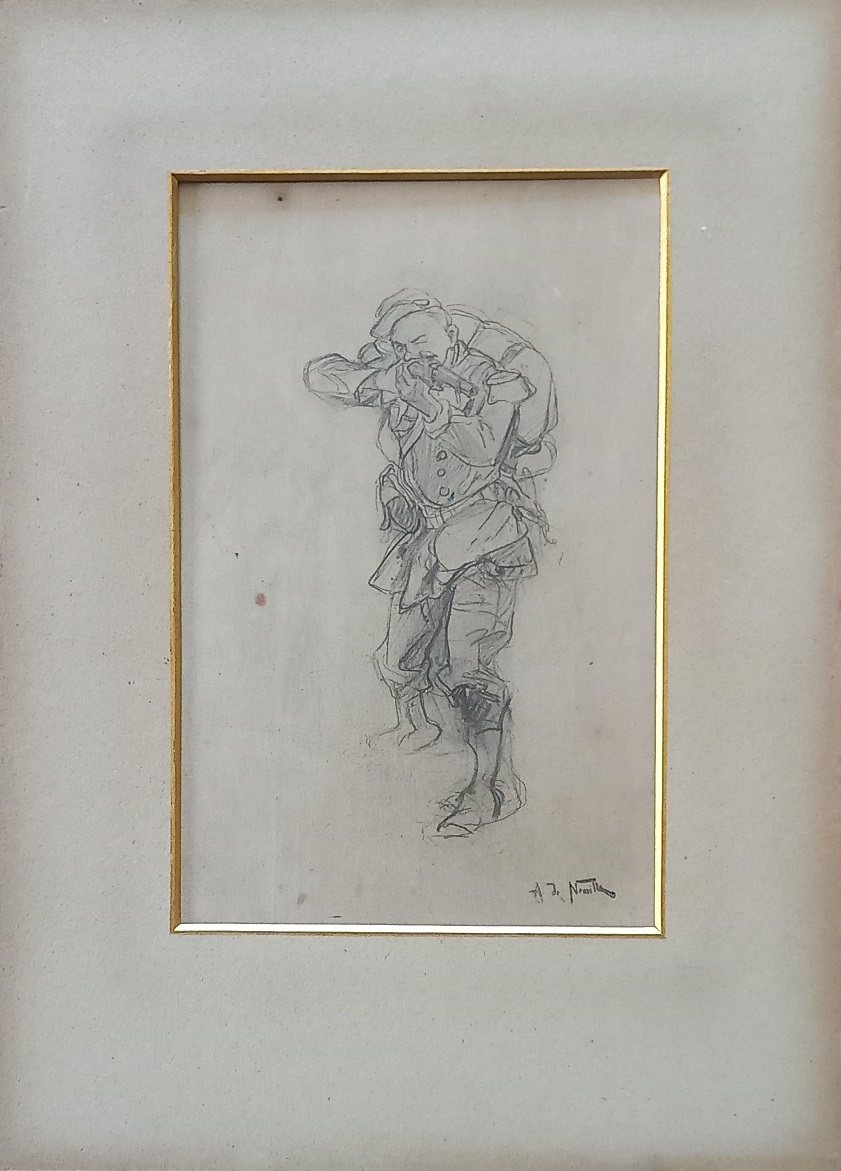 De Neuville Alphonse (Saint-Omer 1835-1885) Soldato matita su carta...