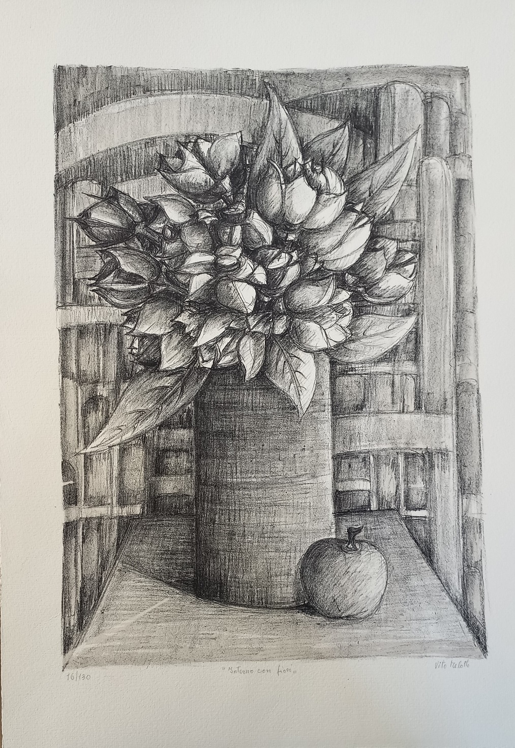 Melotto Vito (Verona 1928) Interno con fiori litografia cm.50x35 esemplare...