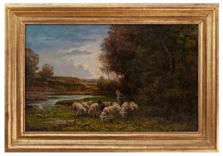 Elena Falco Marisaldi S.Stefano B. (CN) 1901 - TORINO 1986 Pastorella con armenti Olio su tela cm 49x78