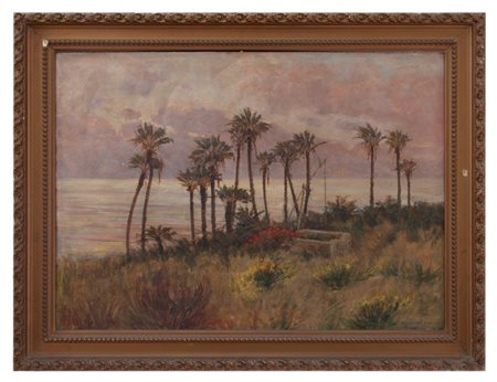 Alberto Grosso Torino 1860 - Sanremo (IM) 1928 Nel giardino Winter a Bordighera Olio su cartone cm 50x70