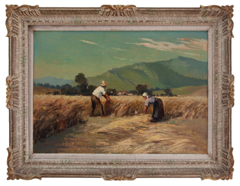 Ercole Magrotti Milano 1890 - Roma 1967 La mietitura del grano Olio su tavola cm 54x75