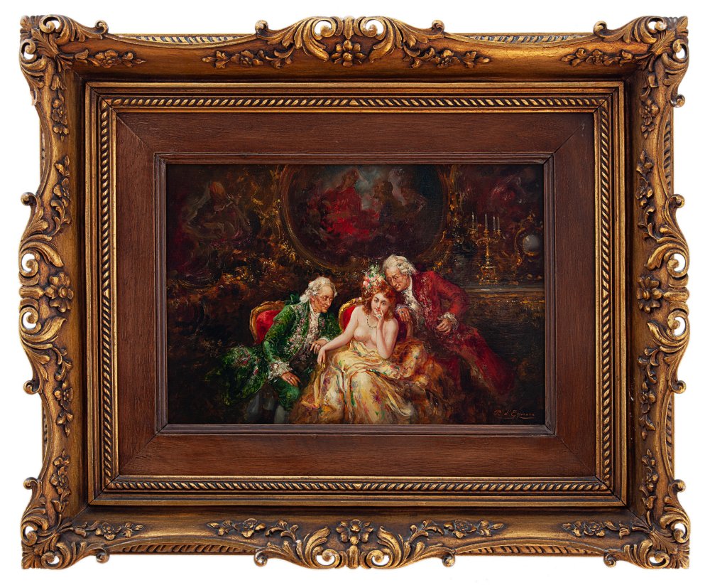 Pablo D’Espinosa Spagna 1849-1919 Scena galante Olio su cartone cm 23x34