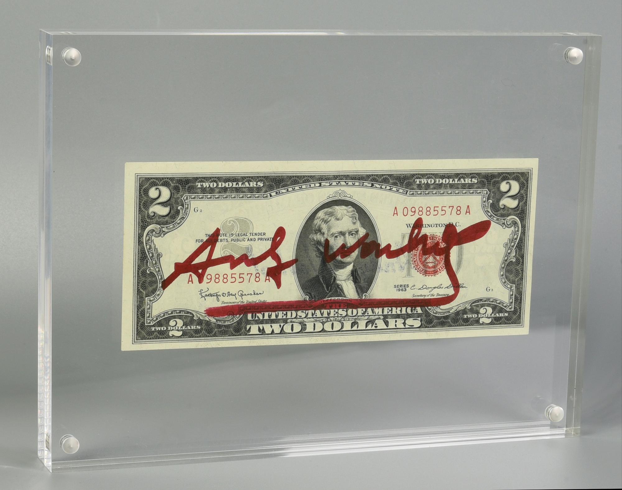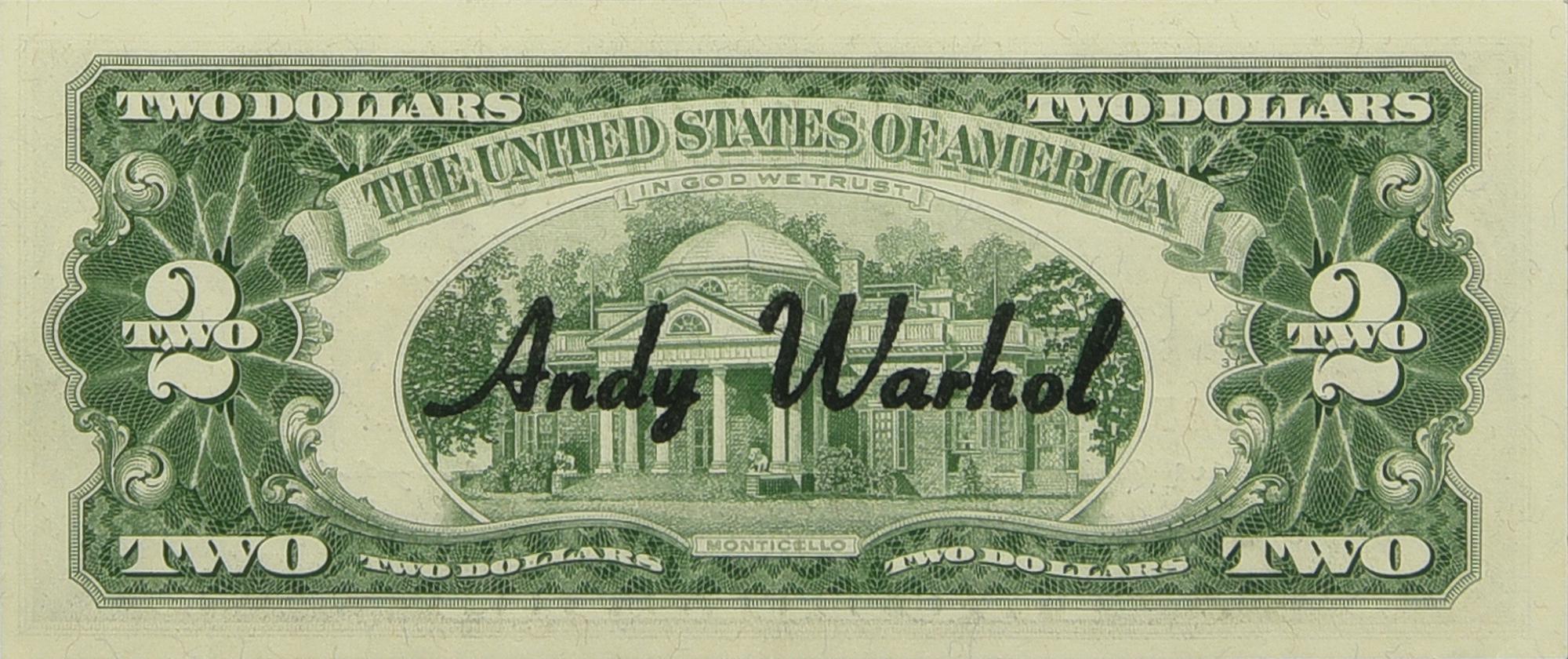 Andy Warhol (1928 - 1987) TWO DOLLARS BILL (Thomas Jefferson) intervento su...
