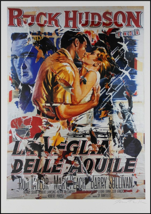 ROTELLA MIMMO Catanzaro 1918 - Milano 2006 "La veglia delle aquile" Multiplo décollage e strappi di manifesto su supporto serigrafico su cartoncino cm 70x100, del 2000-2009. Firmato sul fronte in basso a destra, tiratura P.A. Opera pubblicata sul catalogo "Mimmo Rotella Multiples décollage".