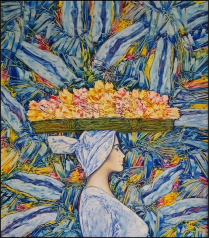 QUARTO ANDREA Lucca 1959 "Orientale" Olio su tela cm 70x80. Firmato sul fronte in alto a destra, sul retro titolo e numero d'archivio. Autentica su foto.