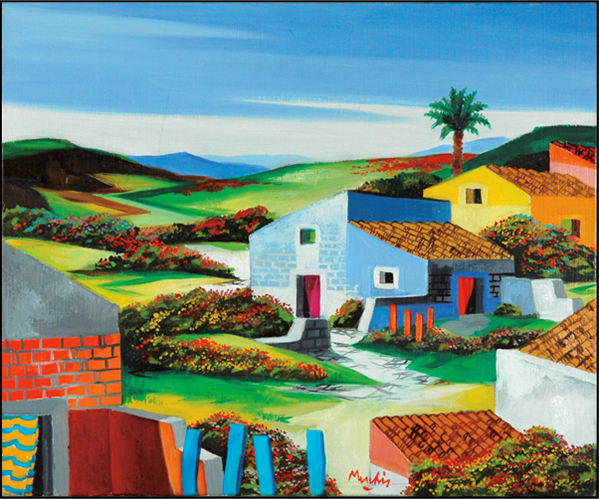 MESCHIS RENZO Palermo 1945 "Paesaggio" Olio su tela cm 60x50. Firmato sul fronte in basso al centro. Al retro firma. Autentica e archiviazione su foto a cura dell'artista su foto, pubblicazione della Galleria Parenti.