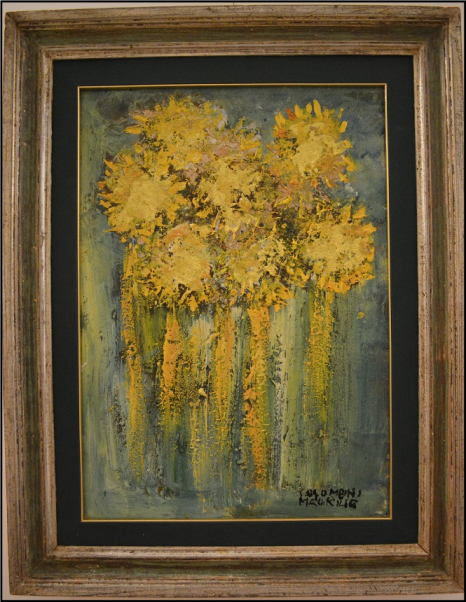 COLOMBINI MAURILIO Piombino 1933 "Girasoli" Olio materico su tavola cm 50x70. Firmato sul fronte in basso a destra. Provenienza galleria Arca di Lecce .