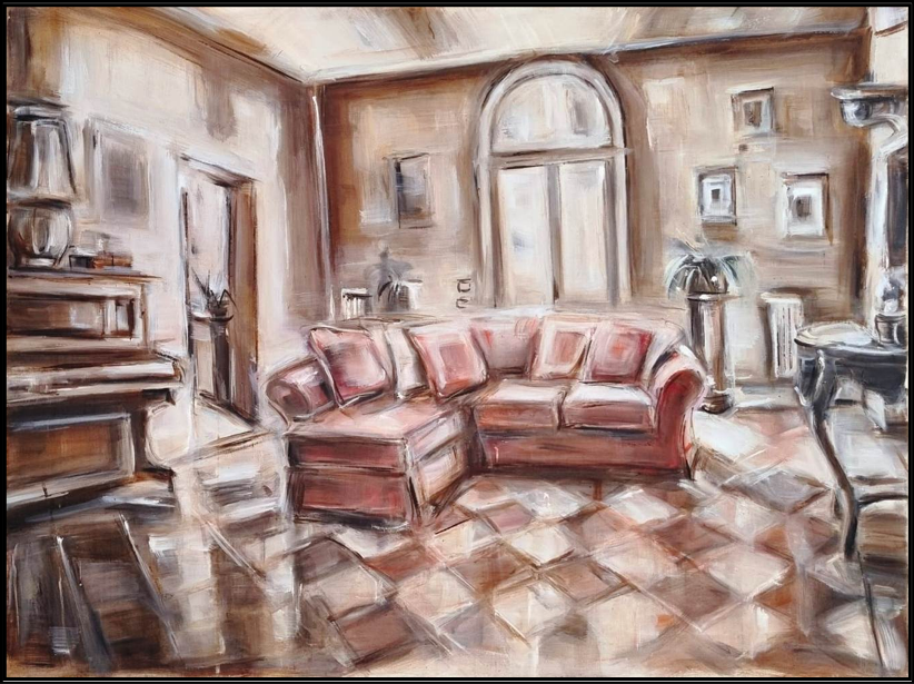 CACUCCIOLO LOREDANA Bari 1968 "Nelle stanze di Andrea interno 44" Olio su tela cm 80x60 del 2011. Sul retro firma, data, tecnica e misure. Opera pubblicata a pagina 21 del catalogo "Rimembranze", in occasione della mostra di giugno 2016 in Lecce.