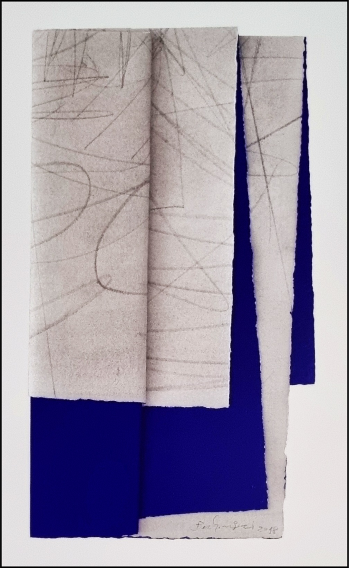 BERLINGERI CESARE Cittanova 1948 "Senza titolo" Tecnica mista su cartone piegato cm 26,5x47 del 2018. Firmata e datata sul fronte in basso a destra. Opera pubblicata sul catalogo "Cesare Berlingeri On Paper", a pag. 43. Autentica su fotografia a cura della galleria Spirale Arte di Milano. Opera incorniciata.