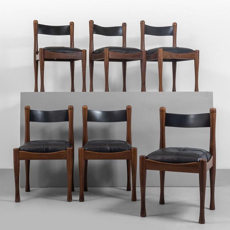 Legno di faggio tinto all'anilina sedute e schienali rivestiti in pelle.