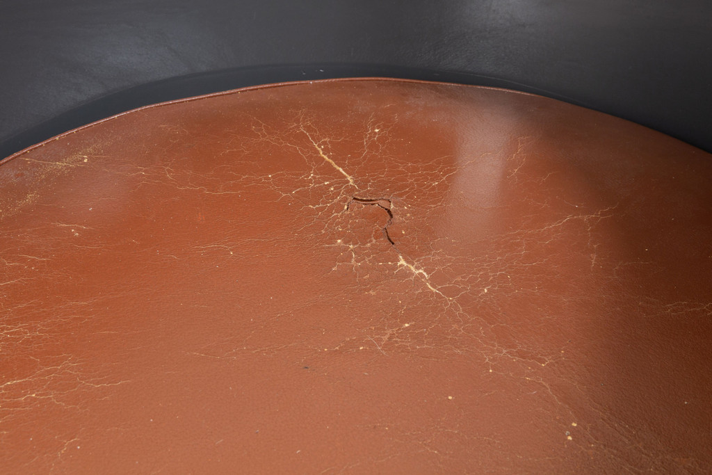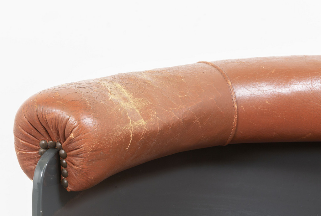 Painted curved plywood and leather upholstery.