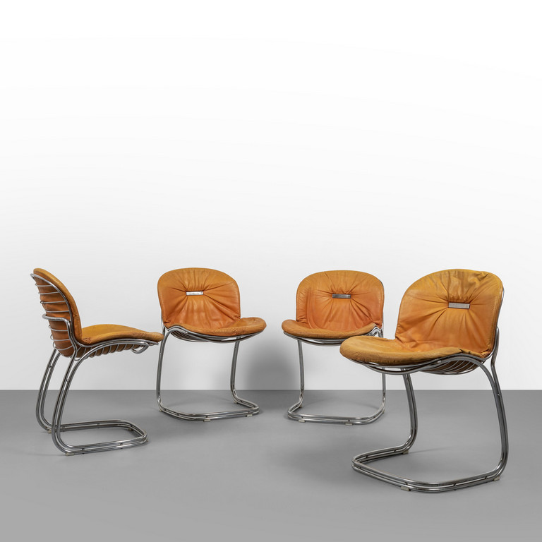 Acciaio tubolare cromato cuscini rivestiti in pelle.