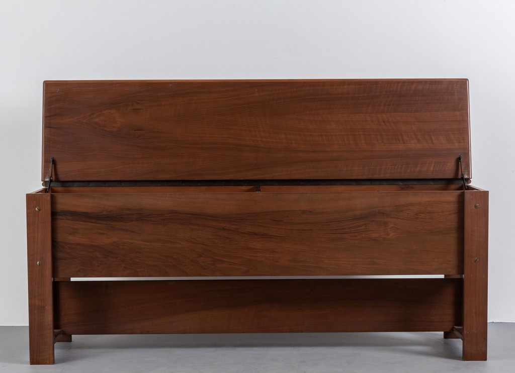 Legno impiallacciato noce piano a ribalta divisorio centrale.