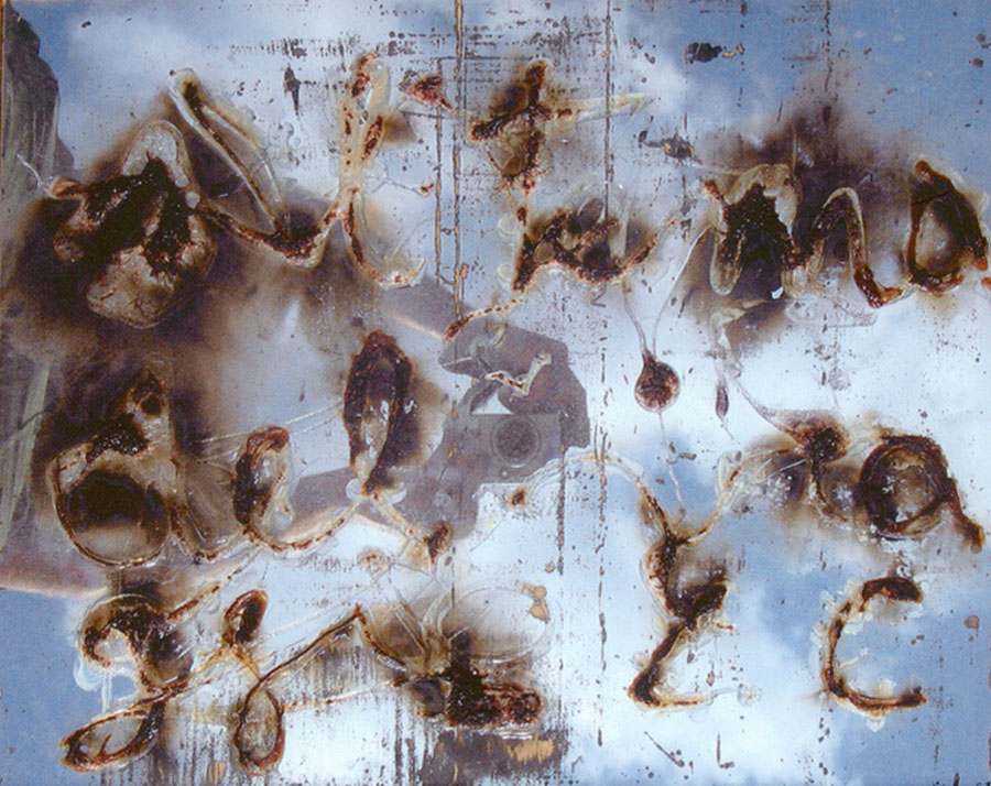 LUCIANO CARUSO Poesia Olfattiva, 1971/1975 Colla sintetica e incenso su specchio cm. 40x52 firmato e datato