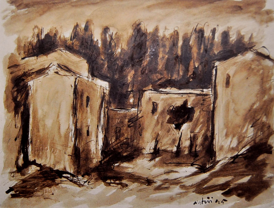 GUALTIERO NATIVI Paesaggio, 1945 China acquerellata su carta cm. 21x26 firmata e datata Foto autenticata da Berto Nativi, Archivio Gualtiero Nativi