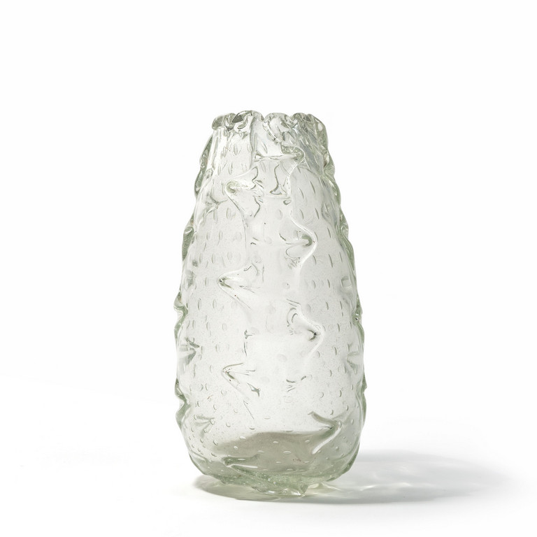 Un vaso in cristallo a bolle con applicazioni.